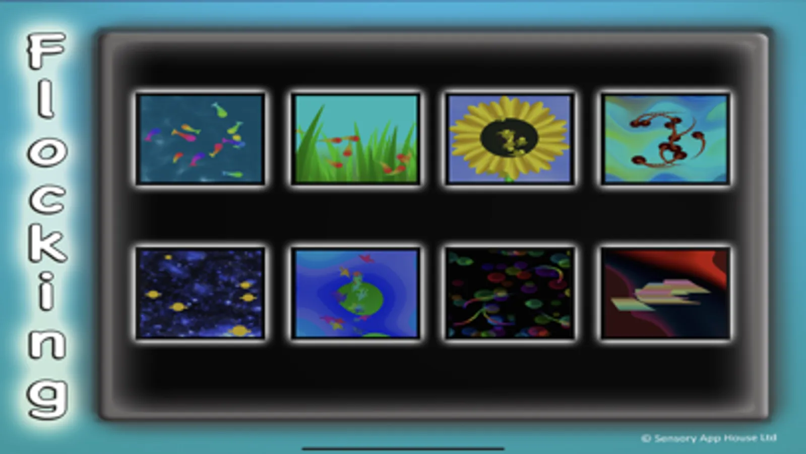 Flocking is an easy to use app for early learners or special access situations. Touch and move around the screen slowly, and the fish will follow. You can also use a mouse/pointer device to lead the fish. In fact there are 8 different types of digital creatures and objects that will "flock" around your lead and follow you around until you had enough. You can change backgrounds and also change the trail that a digital creature can leave behind it.