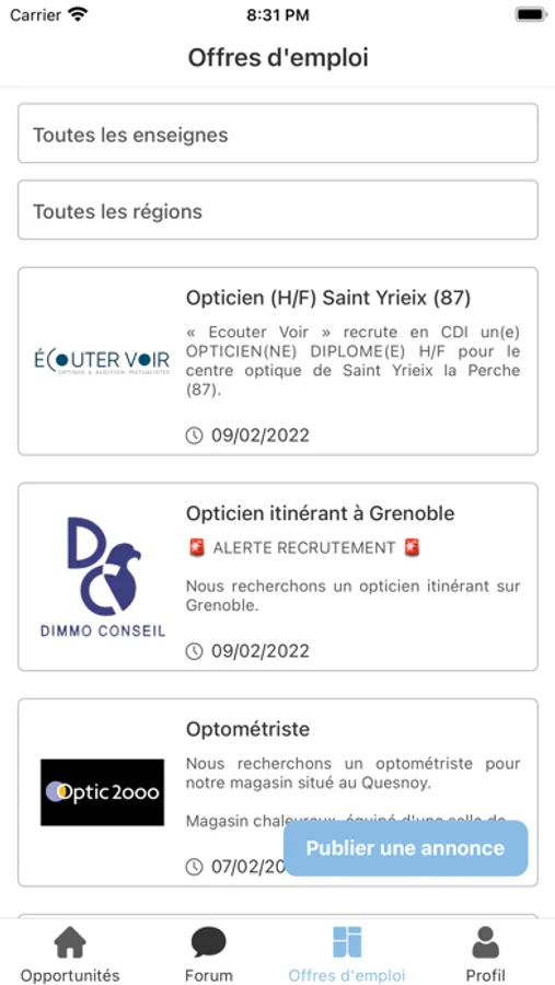 Offre d’emploi (Ajoutez/modifier et consultez les offres d’emploi du monde de l’optique)