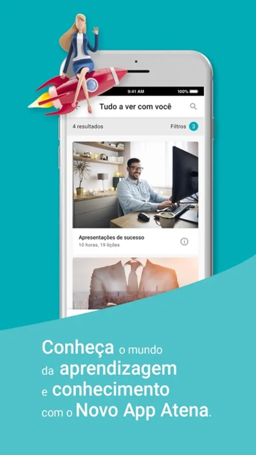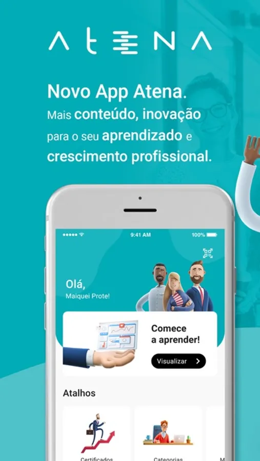Foi baseado nesses conceitos que o NOVO aplicativo Atena foi construído para que você possa desfrutar dos principais recursos do portal de aprendizagem de sua empresa onde e quando quiser. Nosso objetivo é literalmente colocar o conhecimento na palma da sua mão.