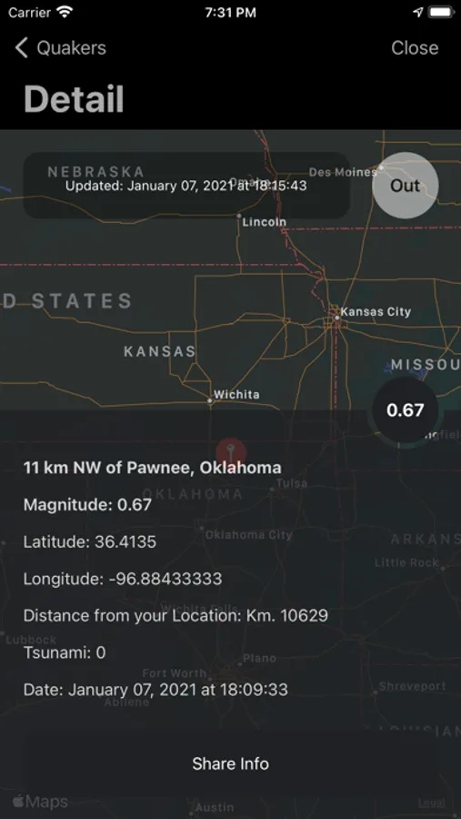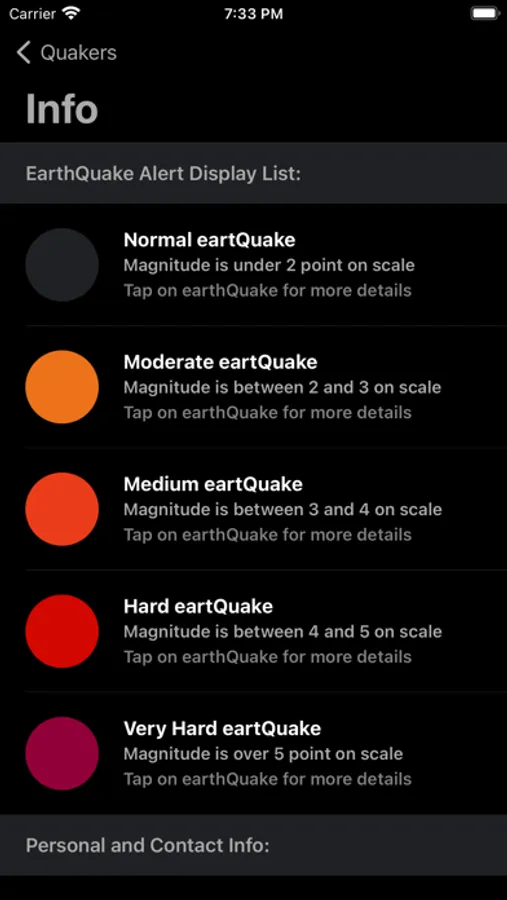 One tap on a single earthquake show you more details for observe or share it. Read the info view for app and personal info .