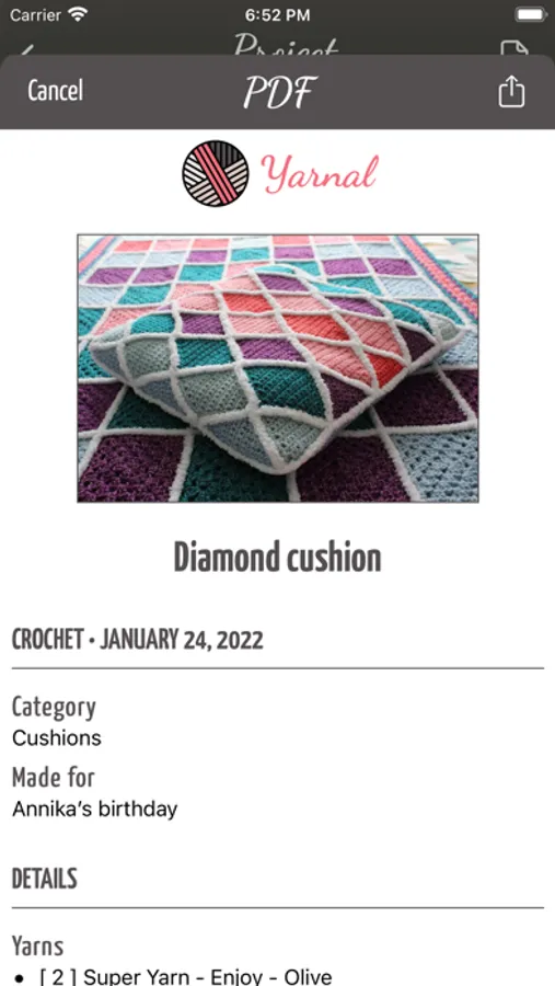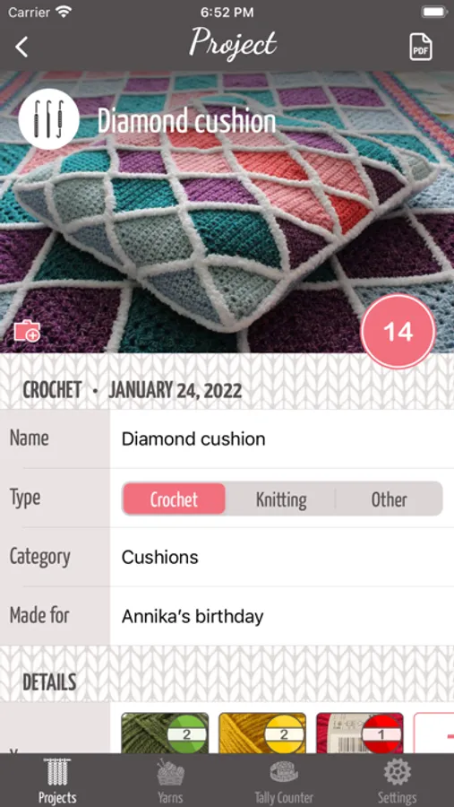 - Store your projects and yarns in iCloud and sync them across your iOS devices.