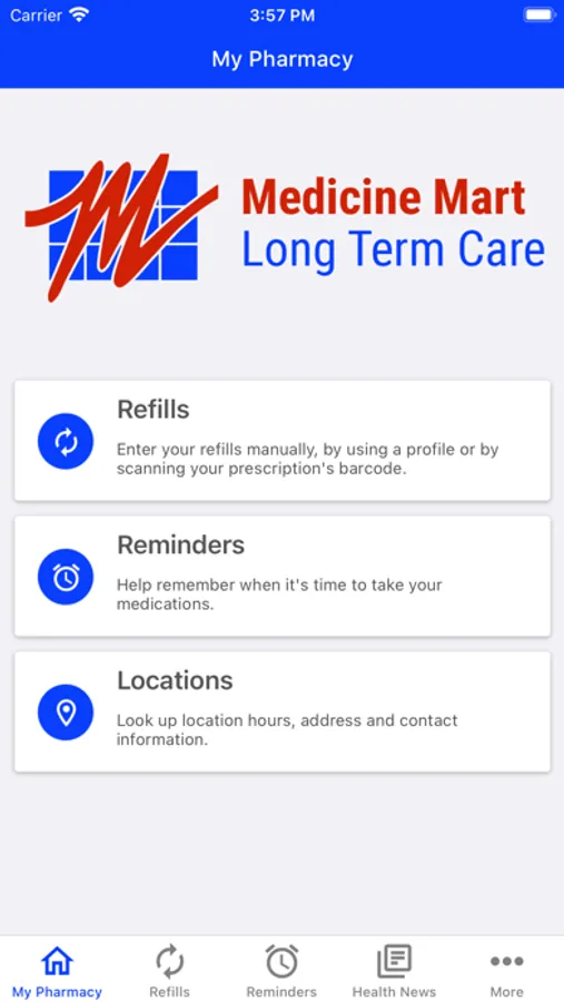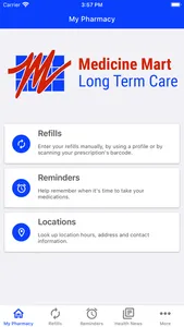 The Medicine Mart Long Term Care app allows you and your family to securely communicate with your local pharmacy. Refill your prescriptions with one click, get refill reminders, get discounts at your local pharmacy, get savings on brand drugs and access Pharmacist written pages that help you understand your condition or medications.