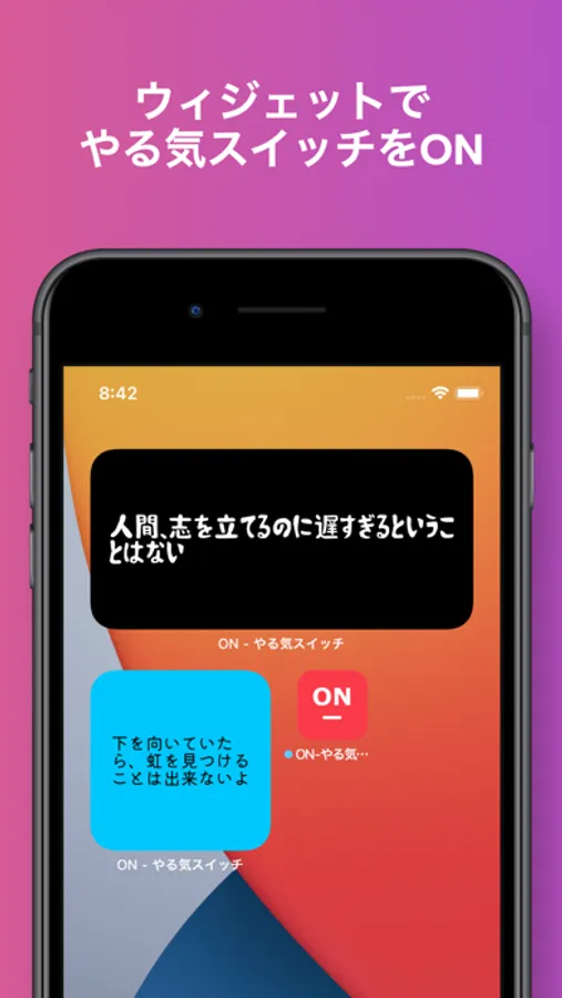 毎日の定期的な通知や、ウィジェットでスマホ立ち上げ時にあなたの考えをリセットしてくれます。