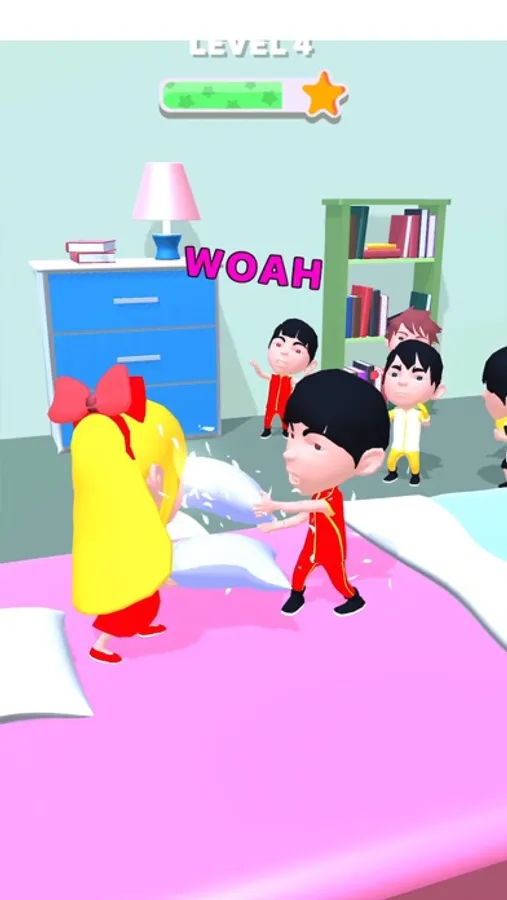 Battle your friends in this pillow fight game. Swipe down to evade, swipe left, up, right to attack. Have fun!