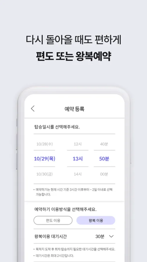*출/퇴근 등 수요가 많은 시간때에는 차량배차가 원활하지 않을 수 있습니다.