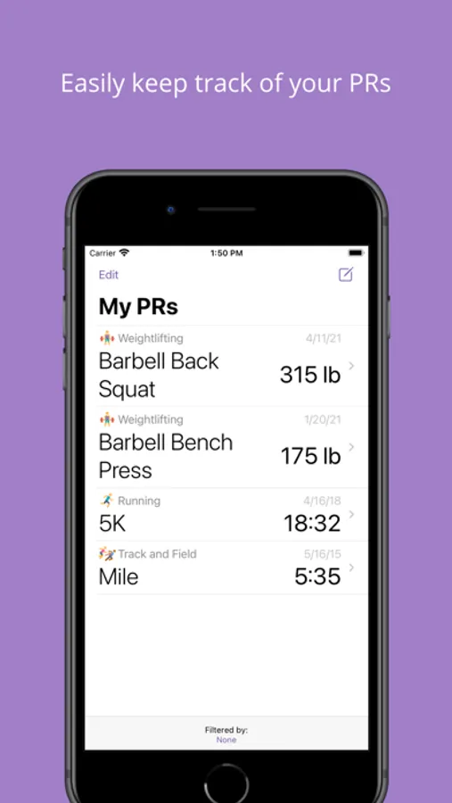 Personal Record Keeper is the easiest way to keep track of your PRs for running, swimming, triathlons, weightlifting, bowling, ....and pretty much anything you can think of.