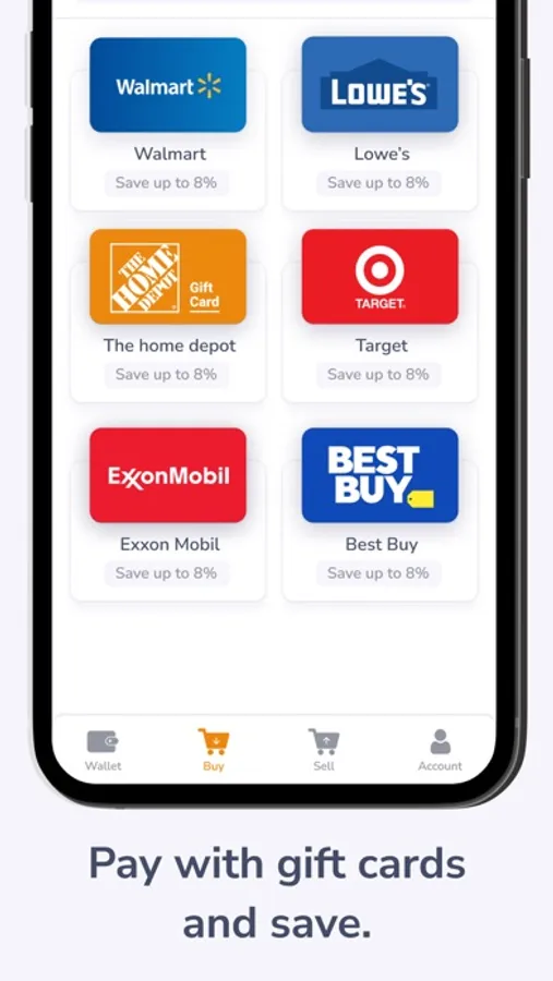 Sign up for a free account and use CardBazaar before you shop anywhere. Our marketplace has thousands of discounted gift cards at up to 30% off. Save on clothing, restaurants, gas, and groceries with our app!