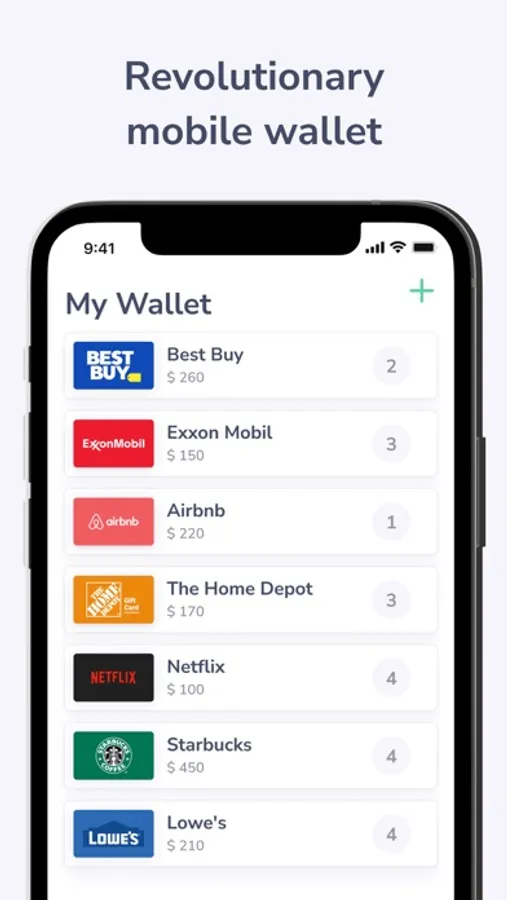 4. Manage your wallet. Enter the exact amount you spent so you know how much is left on your gift cards. Add your plastic gift cards to our app for safekeeping.