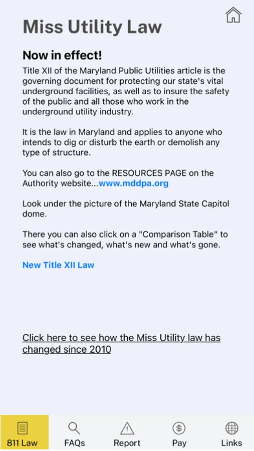 Easy access to the "Authority"; Miss Utility law; file an NPV; pay your fine; get helpful info and vital links.