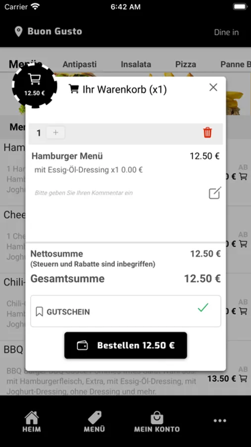 Wir laden Sie ein, es zu versuchen, Sie bekommen bis zu 10% Rabatt auf Ihre Bestellung. Ihr Team von “Pizzeria Buon Gusto” in “Köln”.