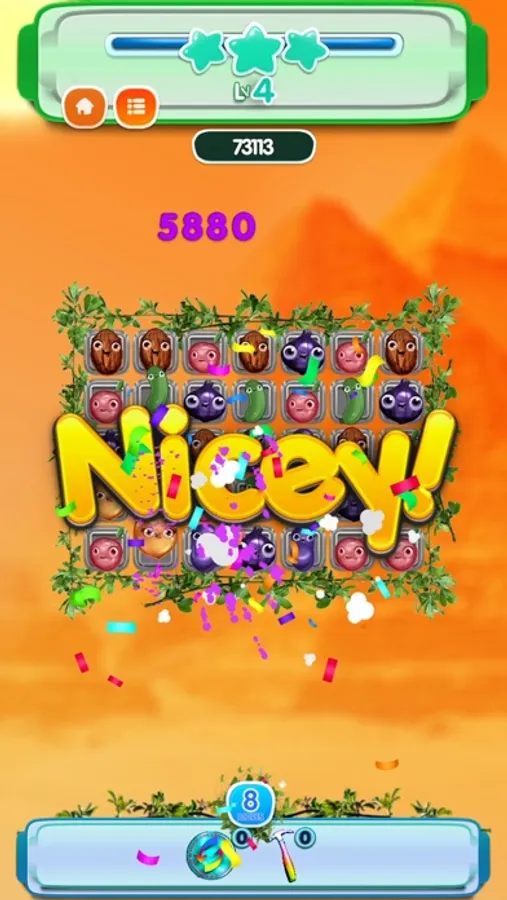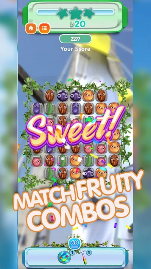 ● Matches of four or more African fruits create unique candies that act as power-ups with larger board-clearing abilities.