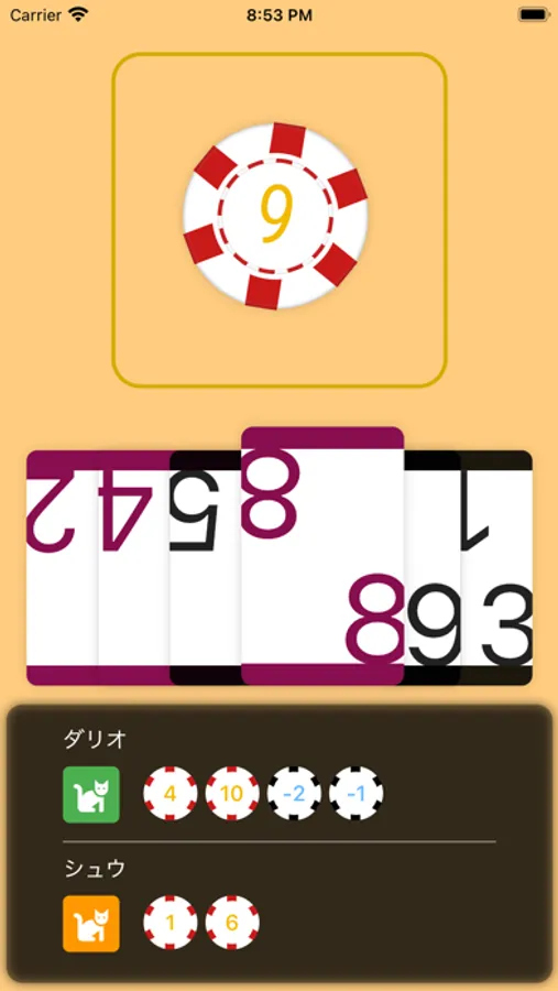 そのカードを出し合い、数値の高いプレイヤーがコインを獲得できます。