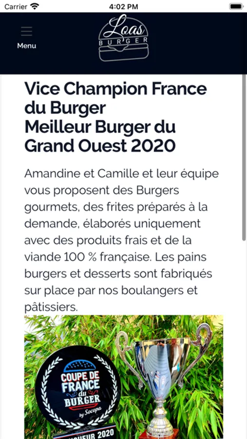 Amandine et Camille et leur équipe vous proposent des Burgers gourmets, des frites préparés à la demande, élaborés uniquement avec des produits frais et de la viande 100 % française. Les pains burgers et desserts sont fabriqués sur place par nos boulangers et pâtissiers.