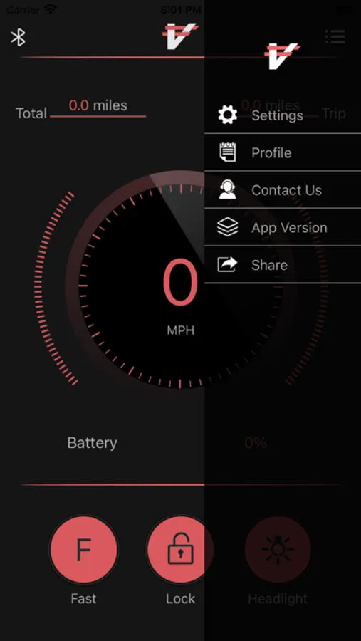2. Through Bluetooth connection to the VICI scooter, the App can show the vehicle's speed, TRIP, ODO and so on.
