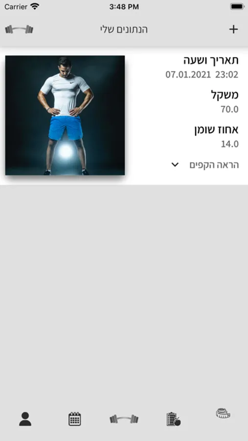 בנוסף תקבלו מעקב מלא אחרי המדדים הפיזיים שלכם כגון: משקל אחוזי שומן והיקפים