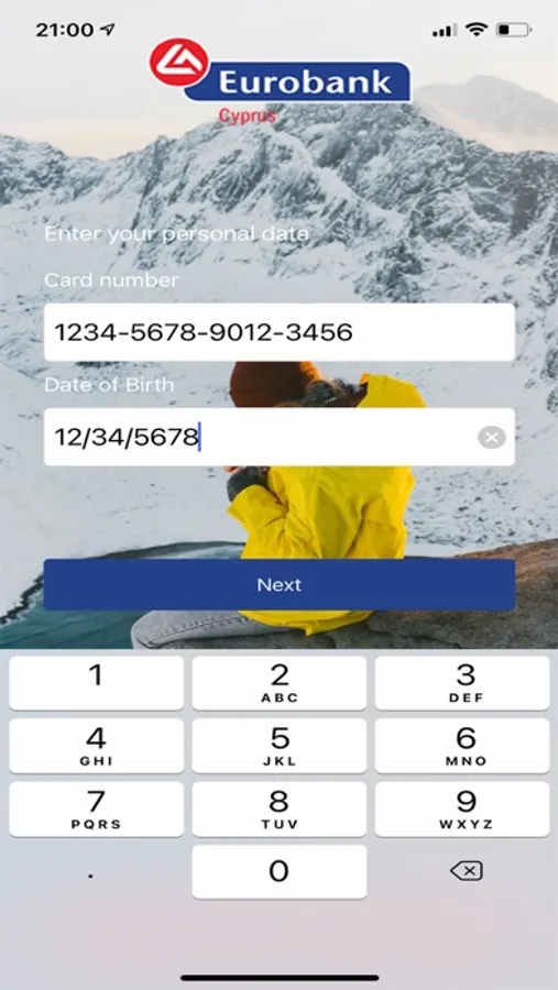 Registration made easy using only your Date of Birth and an Active Eurobank Cyprus card number
