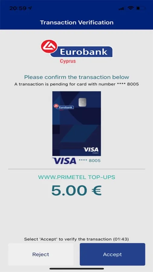 With this app Eurobank Cyprus customers can authenticate e-commerce transactions in a secure manner, by just viewing and accepting the Push notification that will be sent by the Bank to the app.