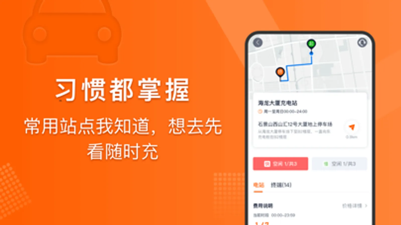 通过目的地电站搜索,附近电站、常用电站,设置家和公司地址,可以快速定位到要查询的充电站。