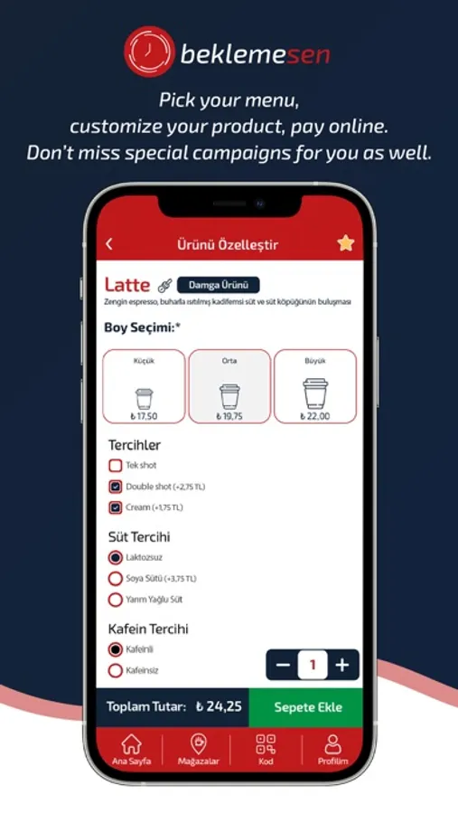 • Accessing the menus of your favorite stores and personalizing the orders as you wish.