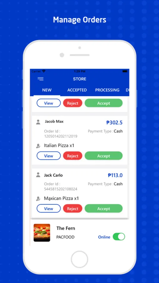 - Manage store details like store name, estimated delivery time, delivery charges, delivery radius, timing, products, etc.