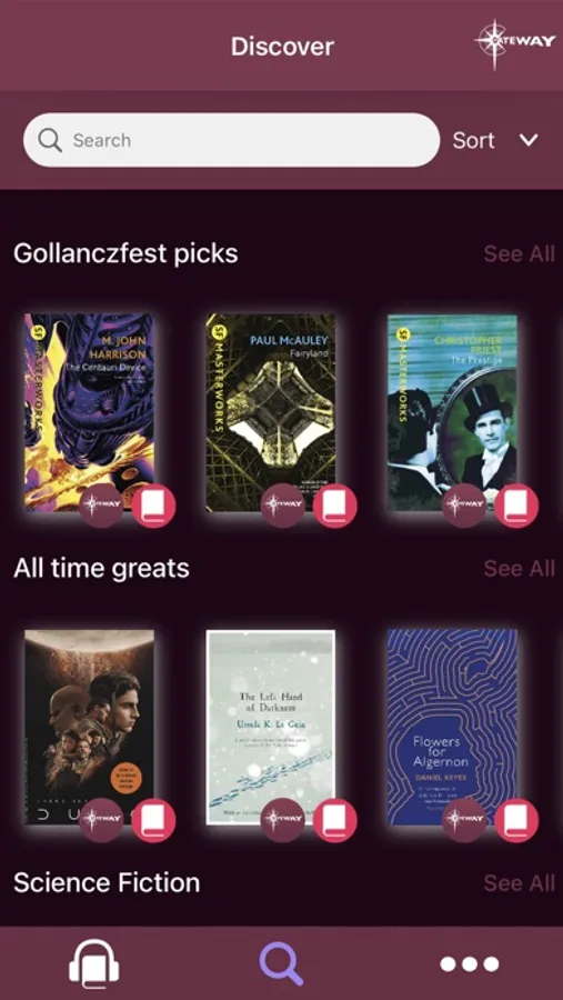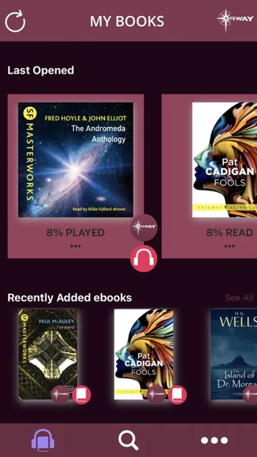 The SF Gateway app is both eBook reader and audio player for all SF Gateway digital content. Your titles are surfaced on the MY BOOKS area of the digital bookshelf, with the DISCOVER area showcasing other SF Gateway titles for in-app purchase - enabling a seamless reading or listening experience.