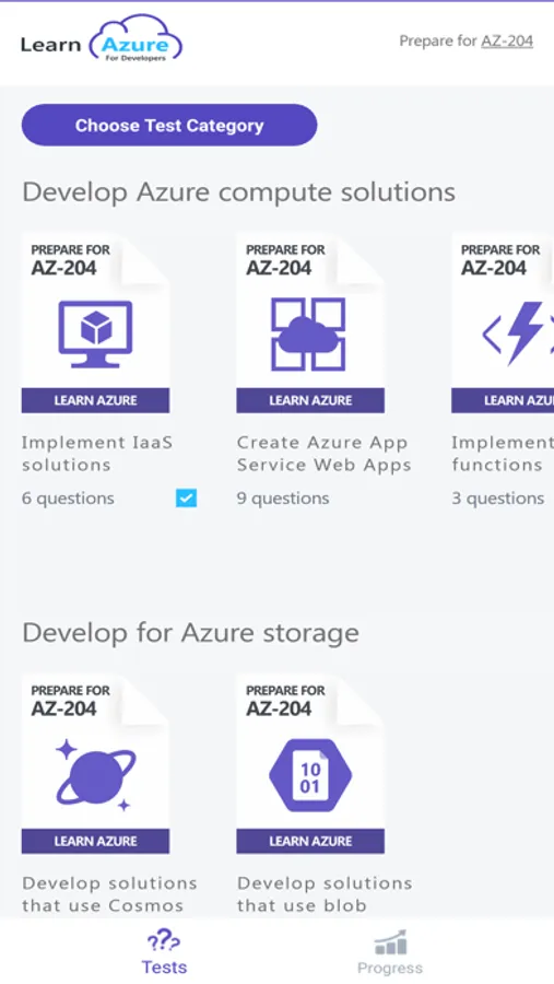 Learn Azure for Developers is an app which helps you to learn development for Microsoft Azure by answering questions in tests.