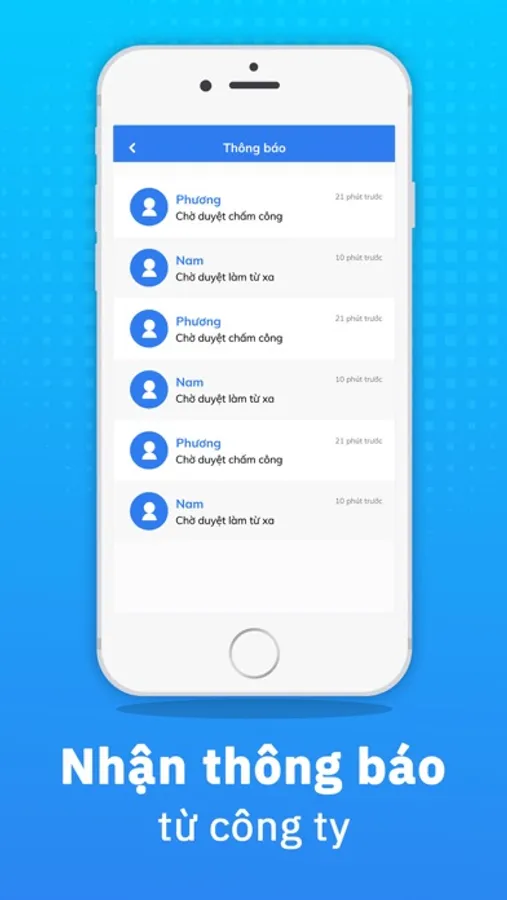 App chấm công này sẽ hiện thị rõ ràng thông tin chấm công của từng nhân viên ở các trạng thái như đúng giờ, muộn giờ, ngày nghỉ phép và bạn có thể sử dụng tính năng lọc trạng thái để tìm kiếm. Nguồn dữ liệu chấm công của nhân viên sẽ hoàn toàn được xử lý một cách tự động và tổng hợp gửi về cho người quản trị, rất thuận tiện cho việc theo dõi.