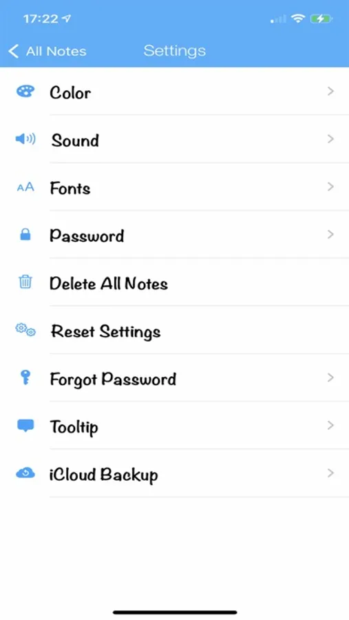 12. Rich settings menu (App Color theme, Sound and Haptic, Fonts , Tooltips , Password, iCloud)