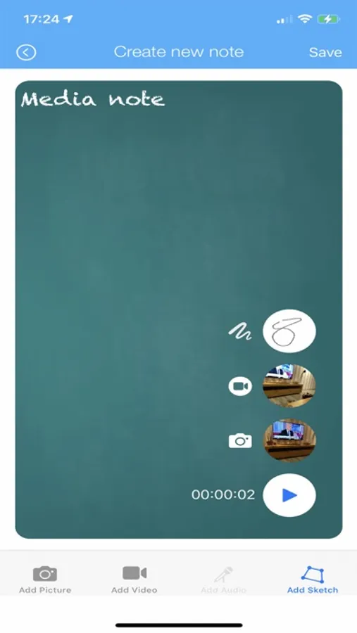 5. preview options for image/audio/video/sketch taken (before the new note is saved).