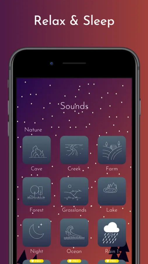 - Easy sounds to help you relax and sleep.
