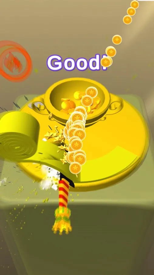 Peel off layers of the tower until you reach the bottom. Be careful not to hit the obstacles!