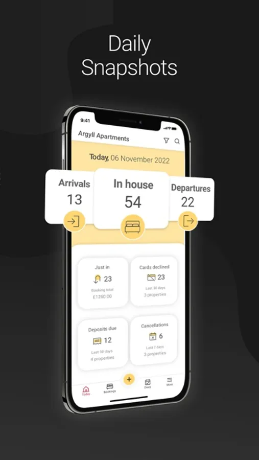• Get an instant overview of new bookings, arrivals, departures and in-house guests.