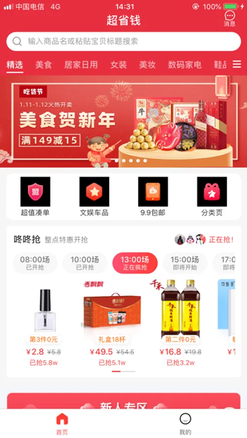 超省钱是一款购物领优惠的app,咚咚抢,9.9包邮,商学院,更有男装,女装,内衣,汽车用品,应有尽有