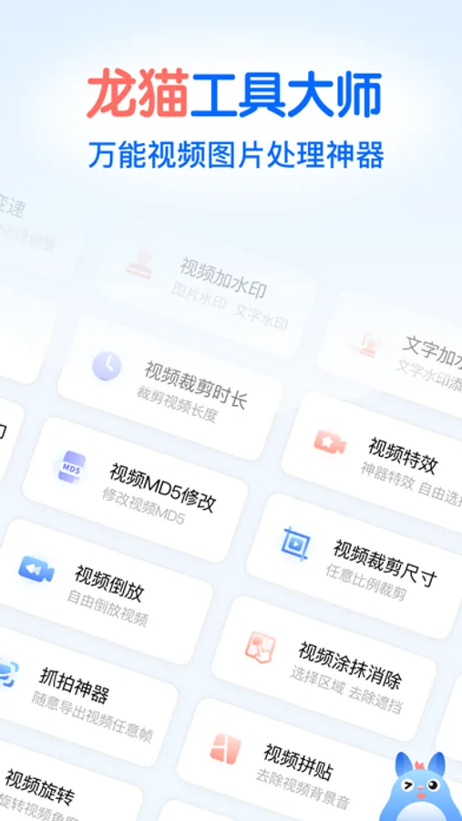 龙猫工具大师是一款万能素材处理工具,界面简洁流畅,有70多种实用功能,是自媒体人必不可少的运营神器。