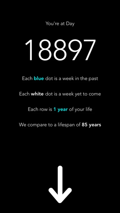Find where you are on the chart of your life at this very moment, and experience the concept even deeper! This app is a simple approach towards a huge philosophical goal. We hope to help you better visualize what Tim had tried to do- to show you just how valuable and limited your time is. Goodluck!