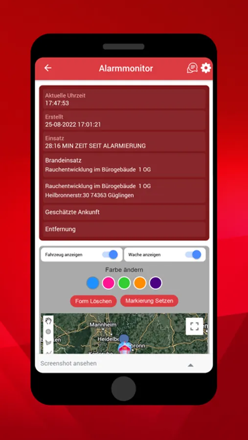 • Übersicht der alarmierten Ressourcen und Fahrzeuge