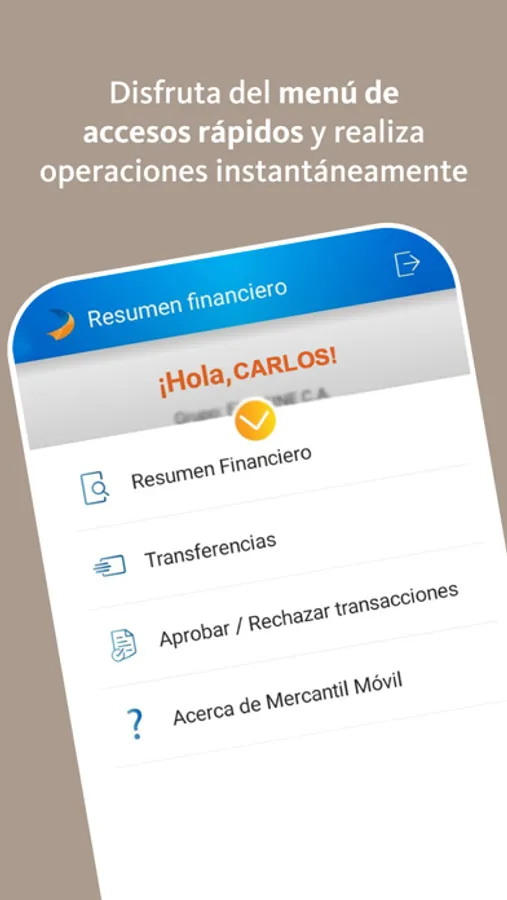 • Transfiere entre cuentas del grupo, a cuentas de terceros Mercantil y de otros bancos nacionales