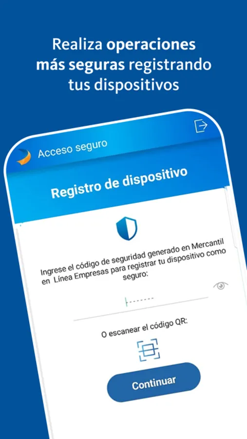 6. El sistema generará un código de seguridad o QR, el cuál será solicitado cuando acceda por primera vez a la aplicación Mercantil Móvil Empresas.