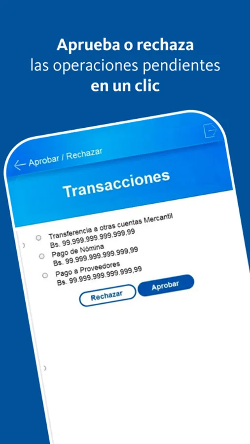 • Aprueba o rechaza transacciones de Nómina o pago a proveedores