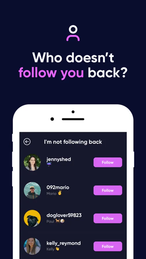 • See the people you follow, but don’t follow you back. Press the Unfollow button to unfollow them immediately.