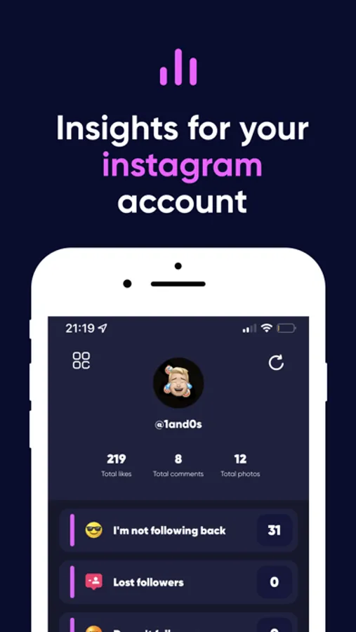 • Track your Instagram account and get all the statistic under one app. See which is your most popular posts, media insights, and more.