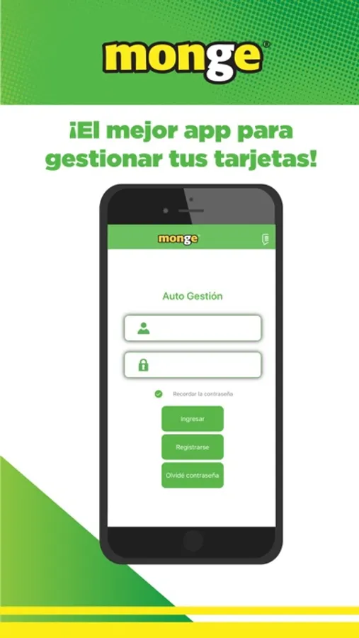Aplicación para la autogestión y consulta de tus tarjetas Monge, pertenecientes a Grupo Monge