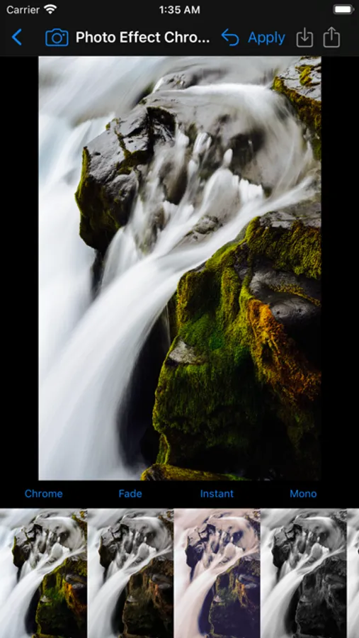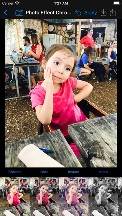 Apply image filters in a quick, easy to use interface. Share filtered photos to text messages & save to your phone.