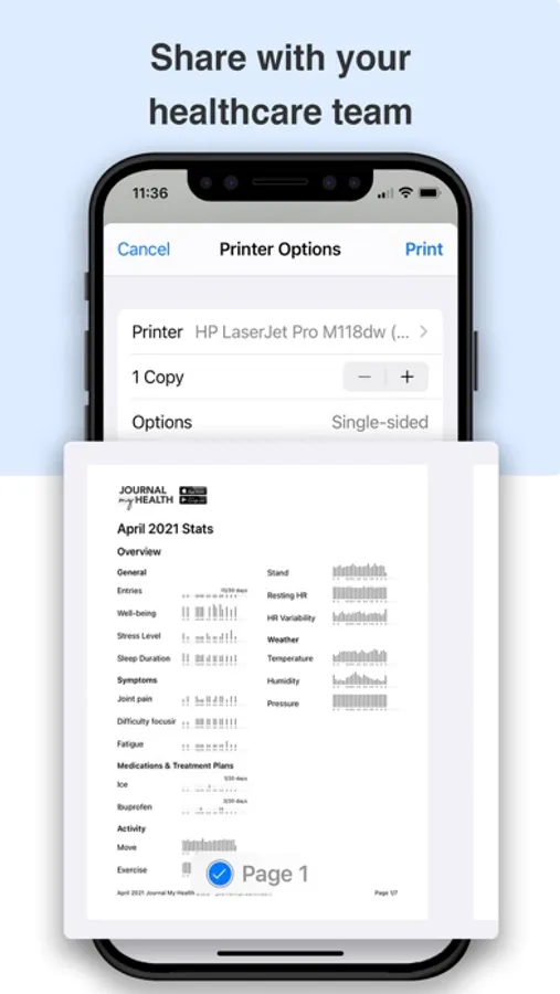 All of this information is charted, so you can visualize how these factors impact your progress. Then you can send this information to anyone on your healthcare team. Take control of your health with JournalMyHealth.