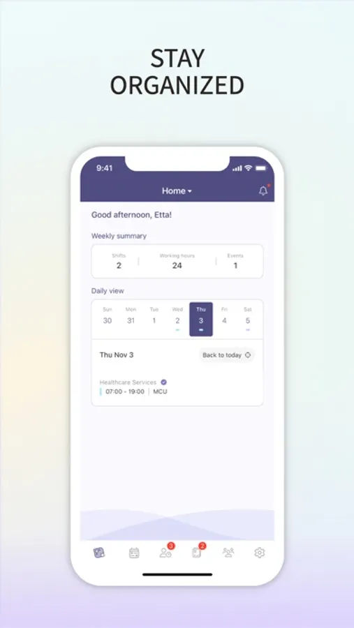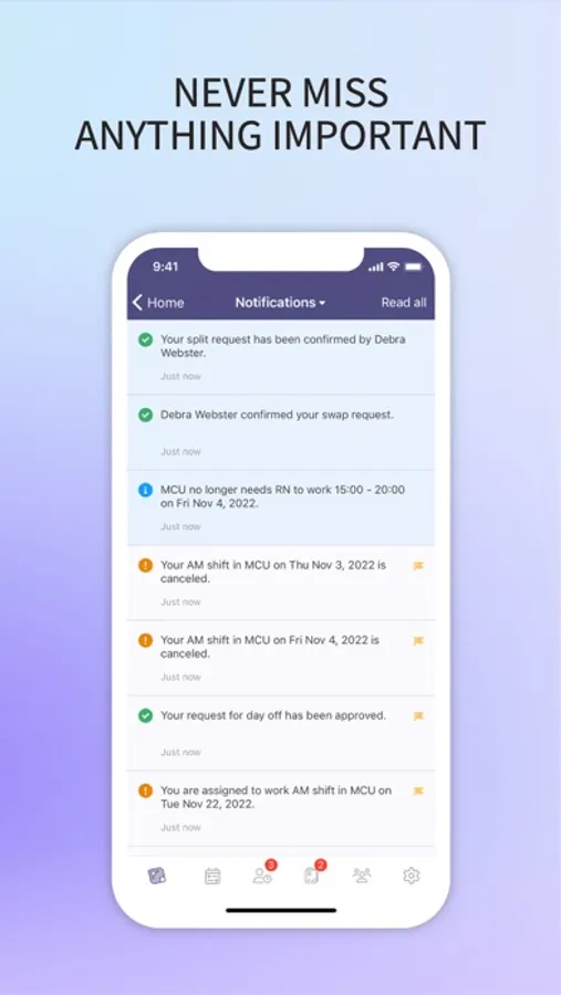Receive notifications when there are updates to your requests, or when open shifts are posted. Get reminders for your upcoming shifts and events.