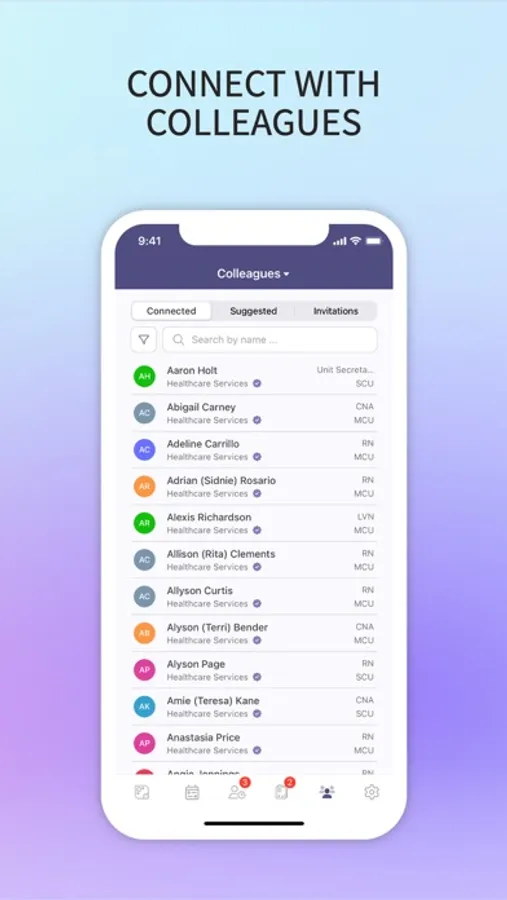 Manage connections with colleagues who are also using NurseBrite. Enable sharing shift information with each other for more convenience when self-scheduling and requesting changes.