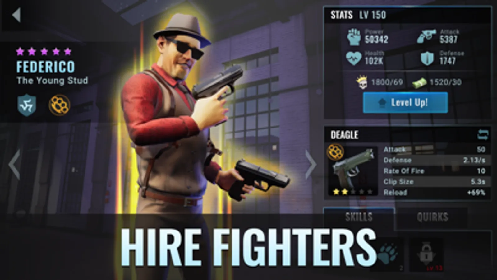 Hire a crew of the toughest thugs from all over the world. Gangstar, Mafia, Triad, Cartel, Mobsters, and other crime families - choose the strongest fighters to build your squad. Build an arsenal of weapons: sniper rifles, machine guns, handguns, melee weapons. Choose whatever you prefer - you're the MAFIA BOSS.