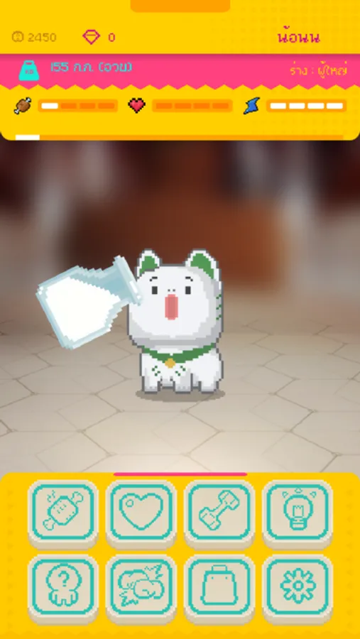 Feed, train and take care of your virtual pet (“Nonns”) to help it grow into the multiple evolution paths available in the game. Play multiple mini games to train your Nons and compete against your friend’s Himmapan mini game scores. Minigames also earn you coin rewards, which can be redeemed to customize your Nonster and its home, or simply to feed it tasty meals!
