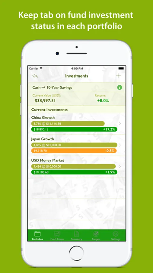 - Set target prices for invested funds to project desired returns.