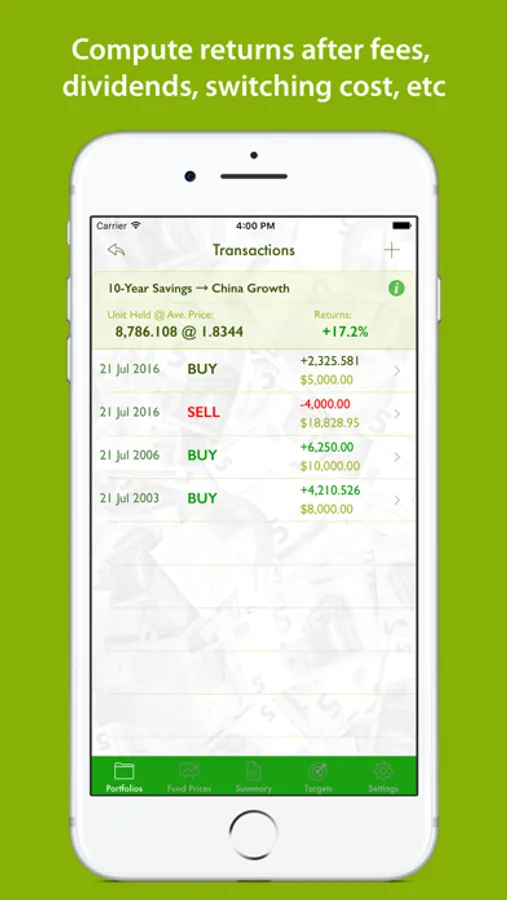 - Summary reports for viewing investment returns (past and present).